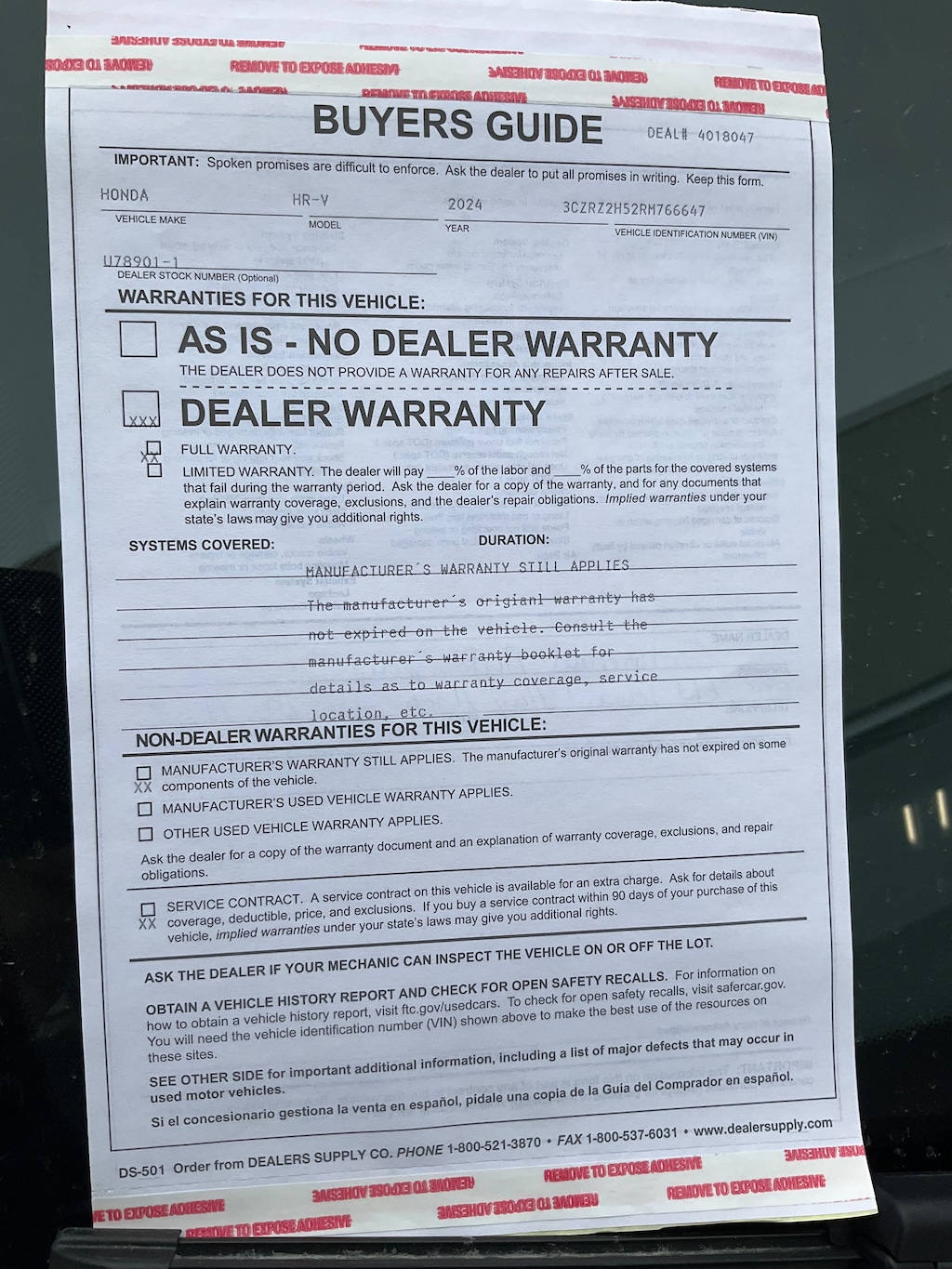 An awesome price considering its low mileage! With fewer than 15,000 miles on the odometer, this 4 door sport utility vehicle prioritizes comfort, safety and convenience. Honda prioritized practicality, efficiency, and style by including: a rear window wiper, a tachometer, and 1-touch window functionality. Smooth gearshifts are achieved thanks to the 2 liter 4 cylinder engine, and for added security, dynamic Stability Control supplements the drivetrain.